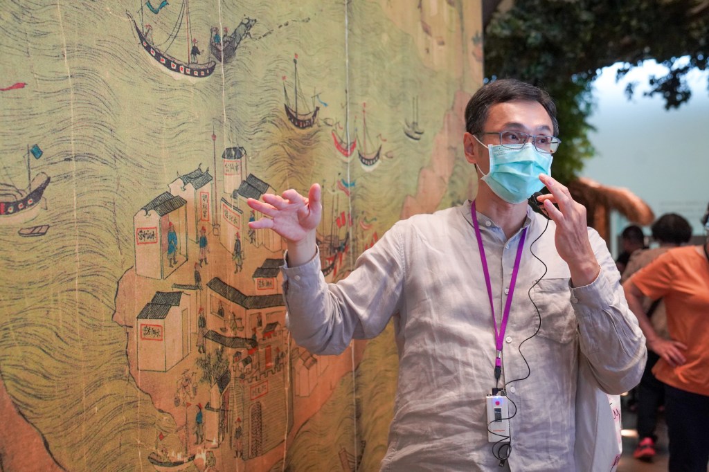 除了詳細的展覽與豐富的典藏,公共服務與教育組組長張淵舜也分享臺史博對於文物典藏與展示的精神:讓人們透過物件追尋歷史,讓博物館創造思辨的平台。張淵舜組長舉例,戰爭結束是一個客觀的歷史事件,但台灣島上每個人在戰後時期所感受到的不盡相同;臺史博試著透過來自民間的文物與訪談,擴大人們對歷史的認知,搭配以數位互動裝置,刺激博物館觀眾思考何謂歷史。張淵舜組長表示,臺灣歷史博物館想呈現的不是帝王將相的歷史,而是屬於台灣的、島嶼的歷史;即使政權會更替,但島嶼上的人們依然持續生活、向前。